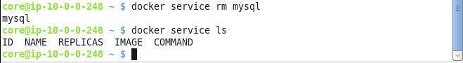 The Docker service gets removed. Subsequently, list the services and the mysql service does not get listed as shown in Figure 40.