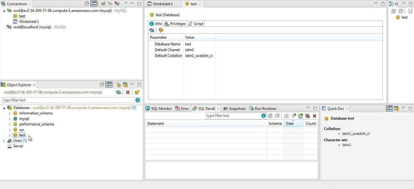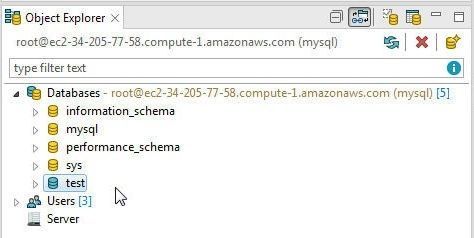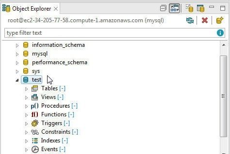 The different database objects are listed in the test database node, as shown in Figure 10.