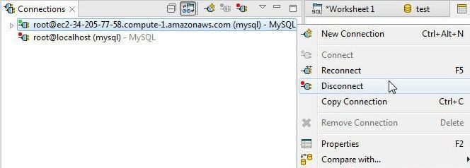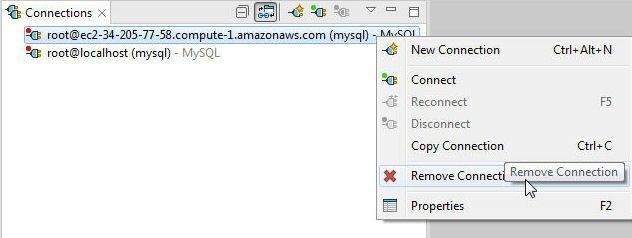To disconnect a connection right-click on the connection in the Connections view and select Disconnect as shown in Figure 37.