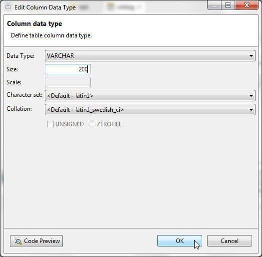 In the Edit Column Data Type dialog modify the Size from 20 to 200 as shown in Figure 25. Click on OK.