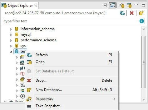Right-click on test database to list the various options for the database as shown in Figure 4.