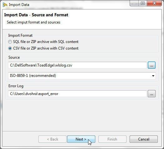 Select the wlslog.csv file as shown in Figure 31 and click on Next.