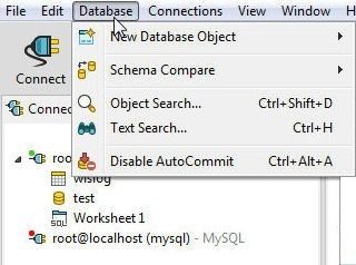 By default a database is in AutoCommit ON mode. A database may be set in AutoCommit Off mode by selecting Database>Disable AutoCommit as listed in Figure 5.
